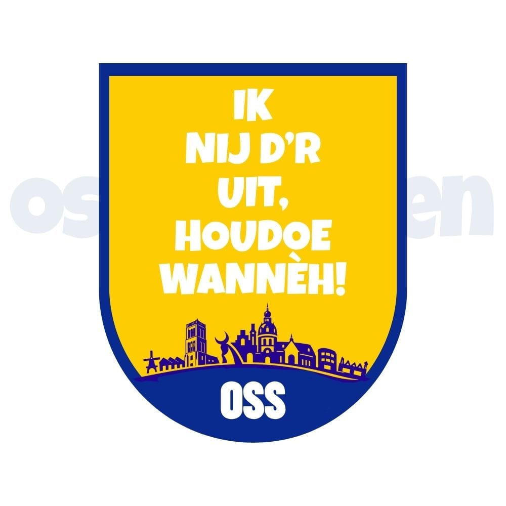 Met het Ossekoppen embleem houdoe wanneh laat je op een humoristische en herkenbare manier zien dat jij helemaal thuis bent in Oss en het Ossekoppenrijk. De tekst “Ik nij d’r uit, houdoe wannèh!” is typisch Osse taal: duidelijk, direct en met een knipoog.